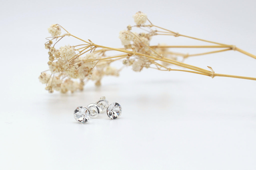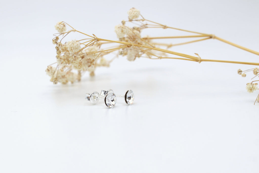 / Runde Ohrringe 925 Silber mit 5mm Schmuckstein klein