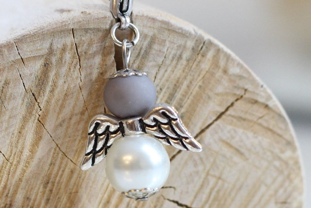 Ob zur Kommunion, Taufe oder als liebevolle Geste für zwischendurch – diese handgefertigten Schutzengel Anhänger in hell Grau und Weiß perlmutt bringen Hoffnung, Freude und ein Lächeln mit sich. 10 Schutzengel aus Perlen in hell Grau matt mit Weiß perlmutt farbigen Perlen eignen sich perfekt als kleines Andenken und Gastgeschenk für die erste heilige Kommunion oder Konfirmation deines Sohnes. Auch als kleine Geste und Andenken für mit in die Trauerkarte zu stecken, eine besondere Geschenkidee.