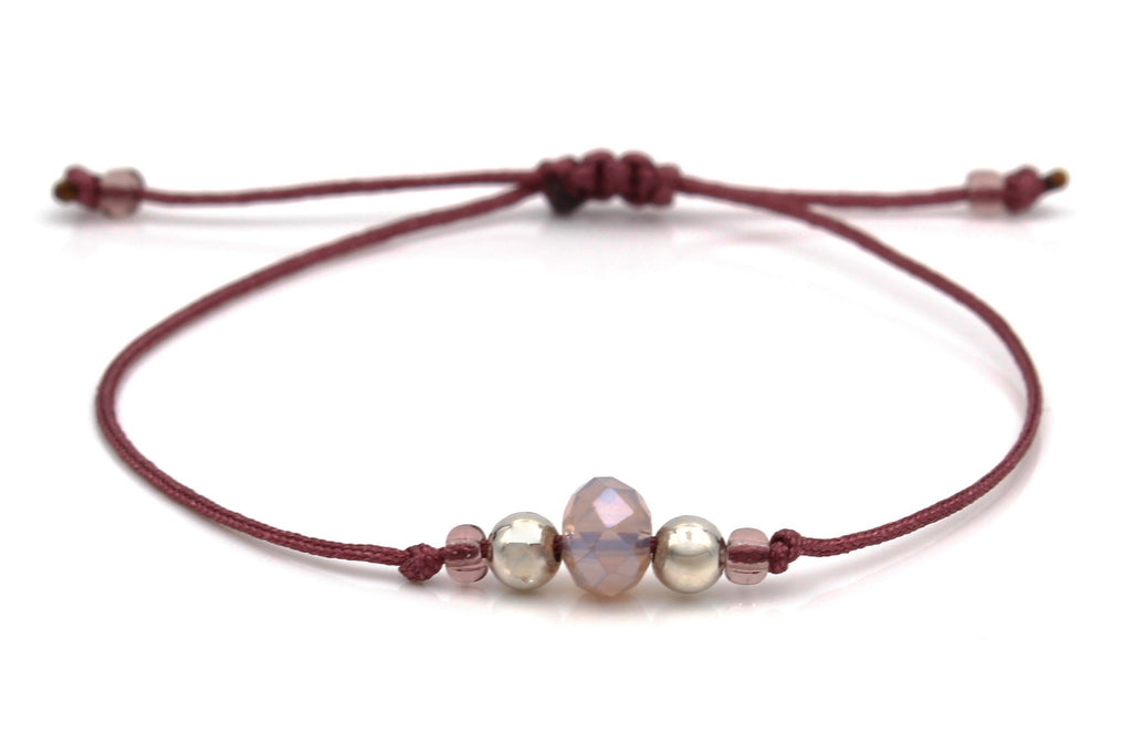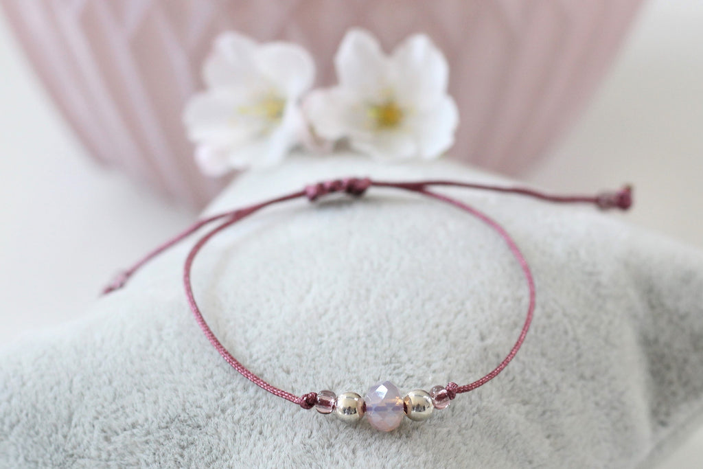 Zwei Perlen, zwei Farben, ein Armband zum Verlieben: Dieses filigrane Makramee Armband in Rosé & Brombeere vereint filigranes Design mit hochwertigem 925 Silber. Zeitlos und elegant und doch so besonders ist dieses Makramee Armband in Brombeere mit 2 Perlen 925 Silber und einer roséfarbenen Glas-Facettenperle als Eyecatcher in der Mitte. Unterschiedliche Materialien werden hier zu einem besonderen Schmuckstück und sorgen für einen unverwechselbaren Look. Einfache Handhabung durch den geflochtenen Makramee Verschluss oder praktisch mit Schiebeknoten Verschluss verstellbar. Ideal als Geschenk für jeden Anlass.