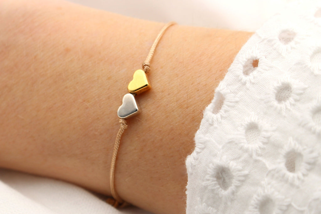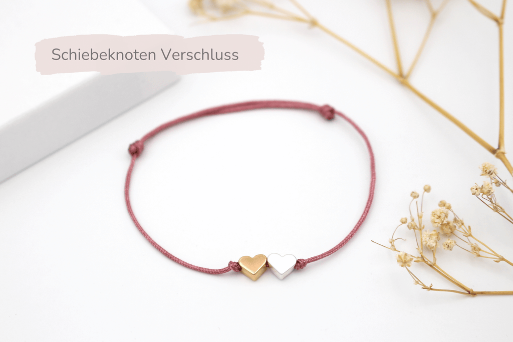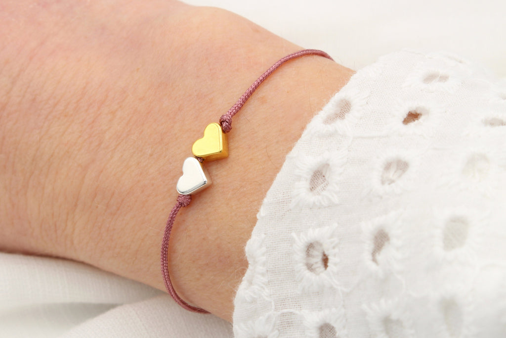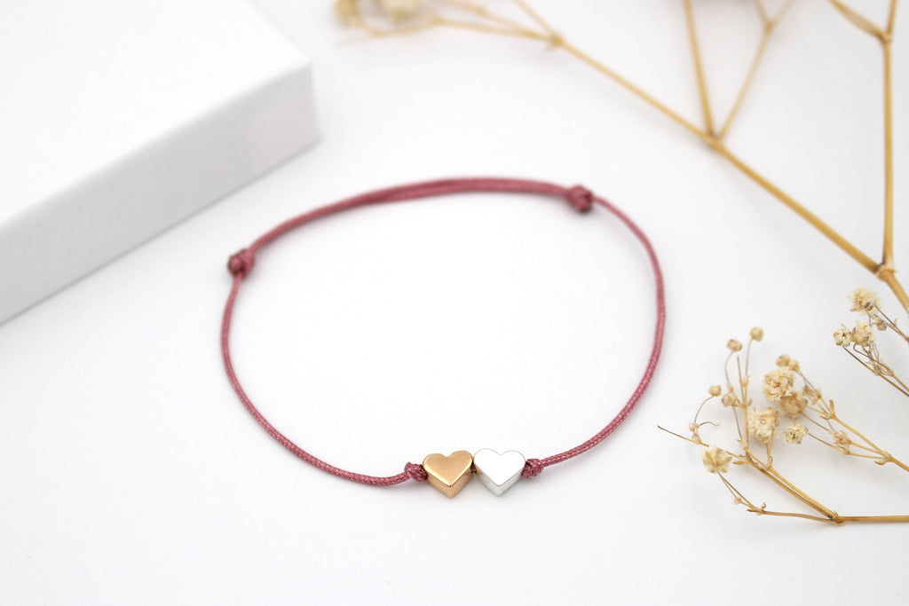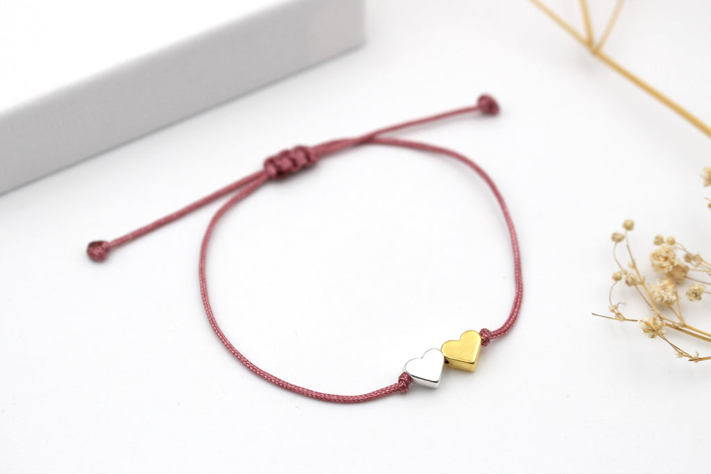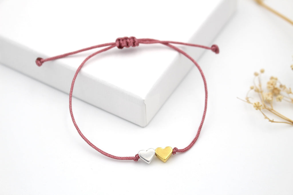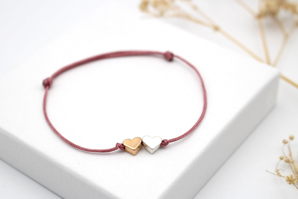 / Armband 2 Herzen bicolor, Bandfarbe wählbar