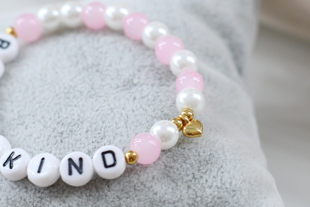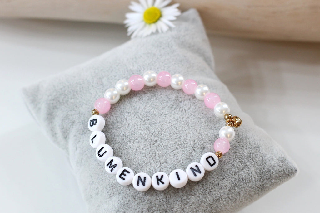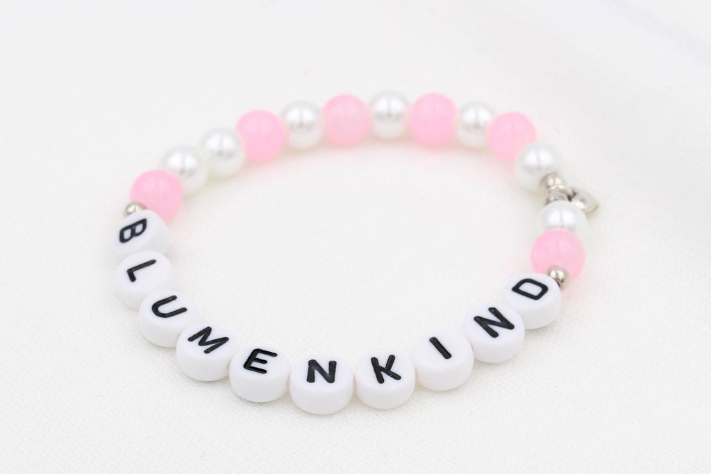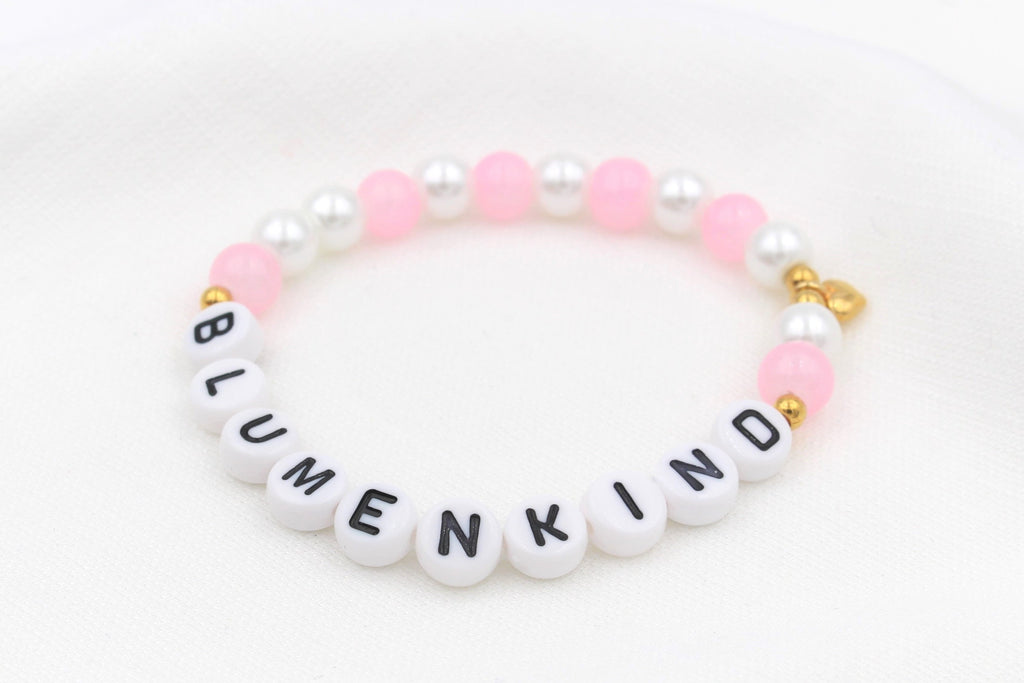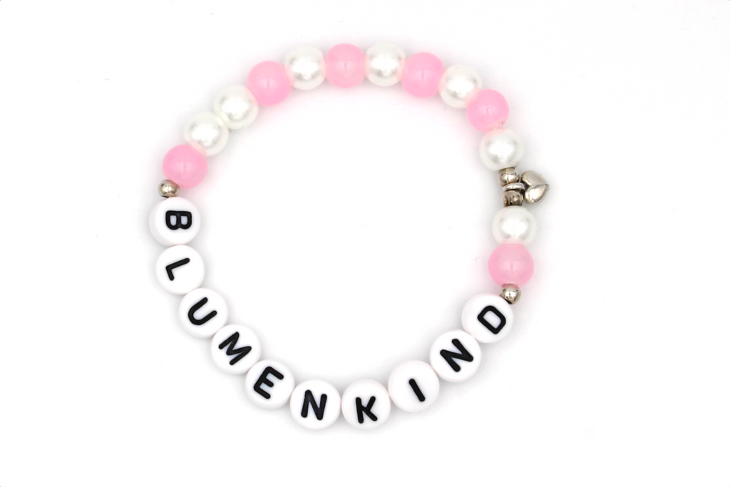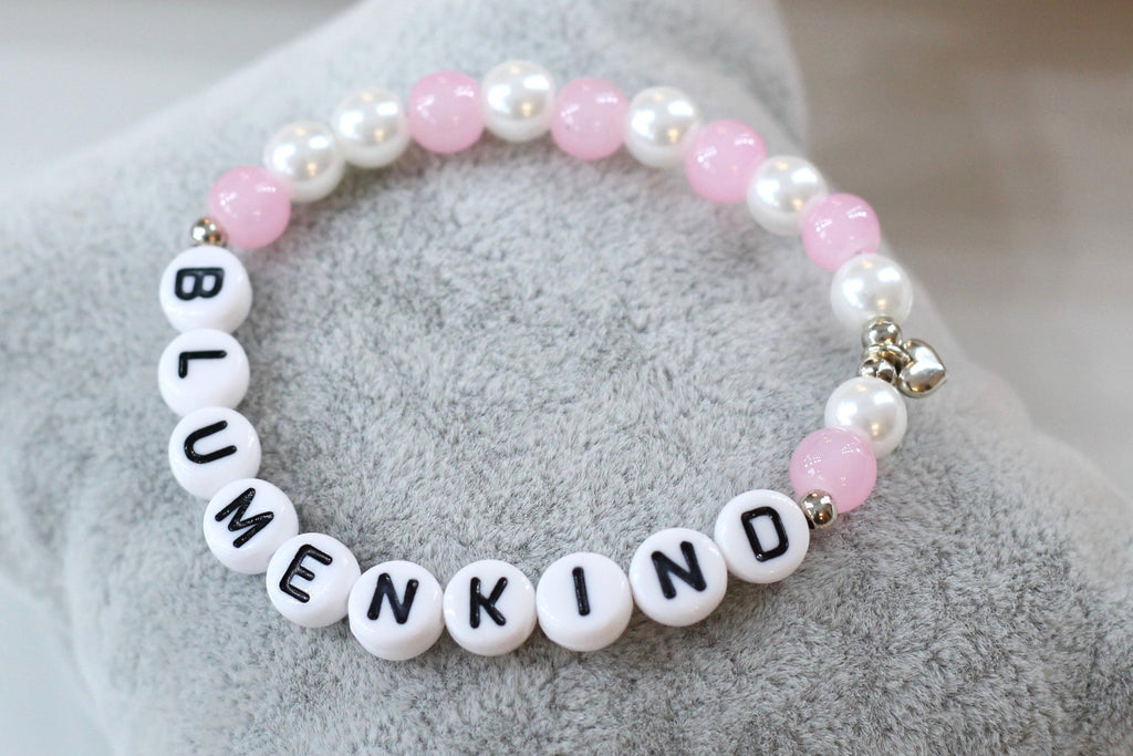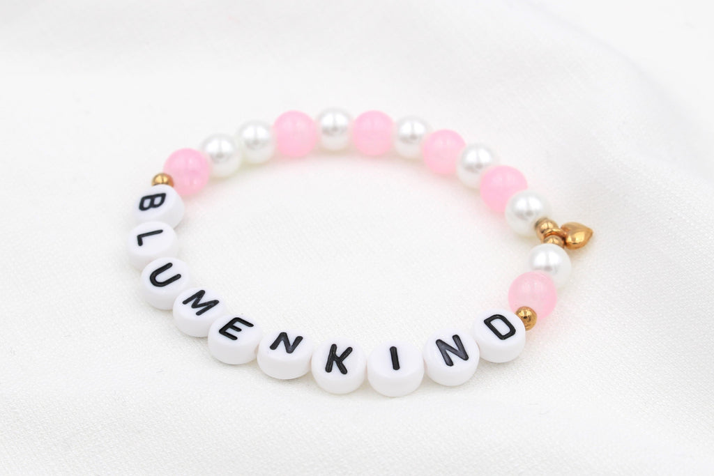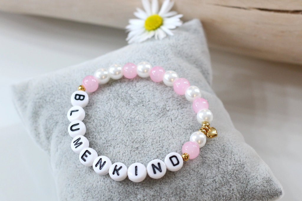 / Blumenkind Armband rosa mit Herz Anhänger