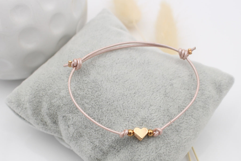 / Lederarmband mit Herz und Perlen
