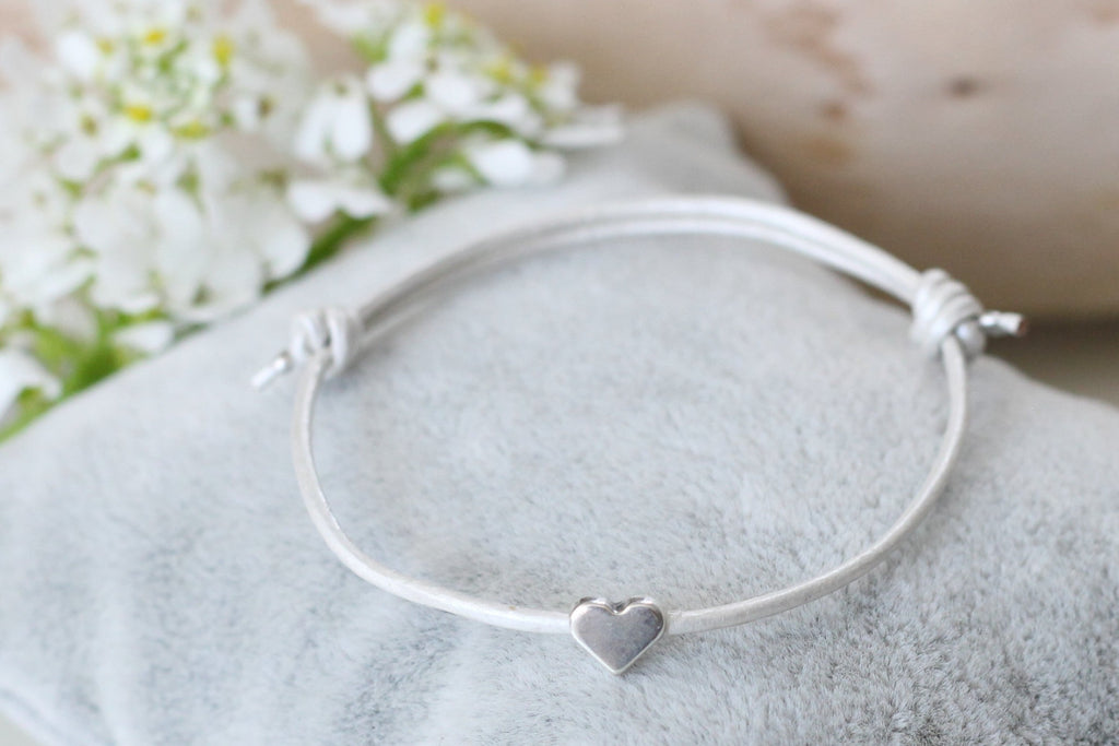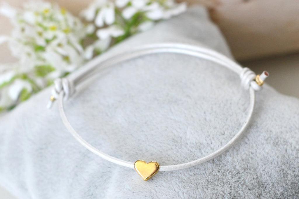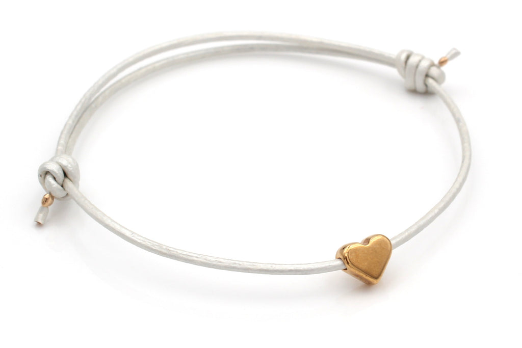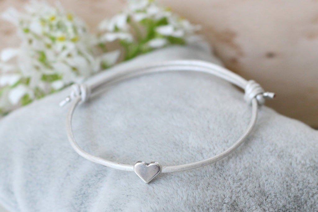 / Lederarmband Weiß mit Herz und Schiebeknoten