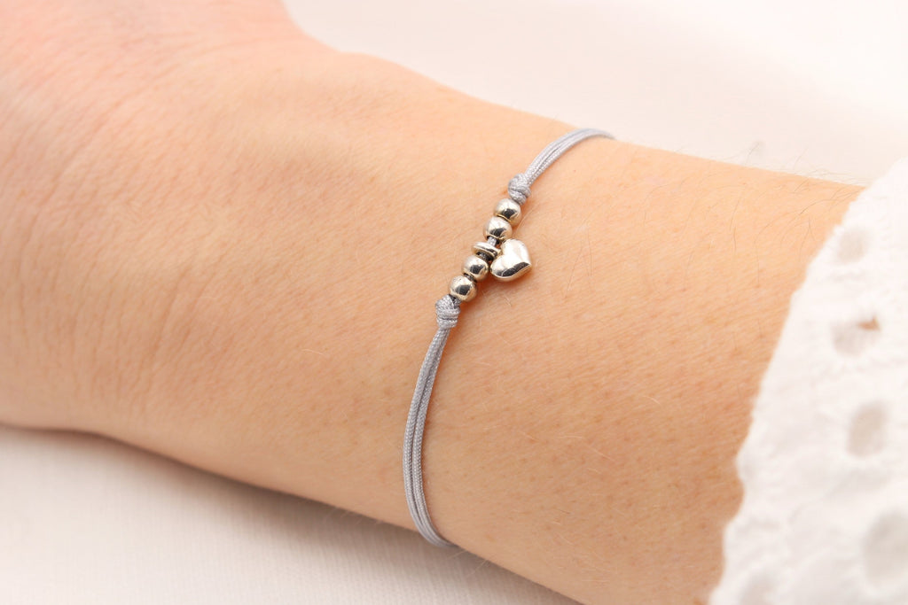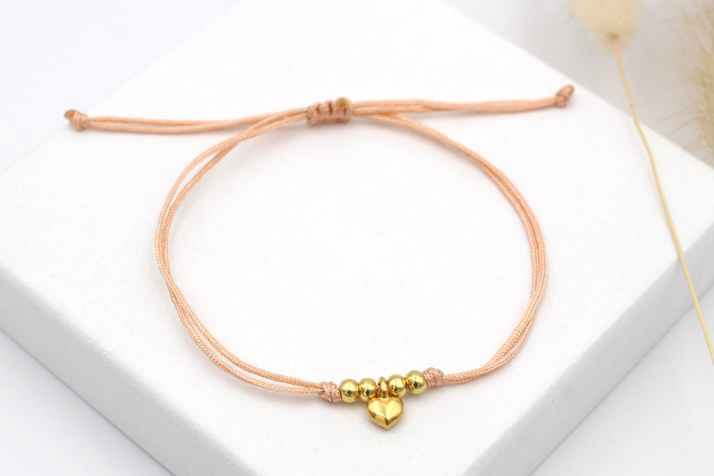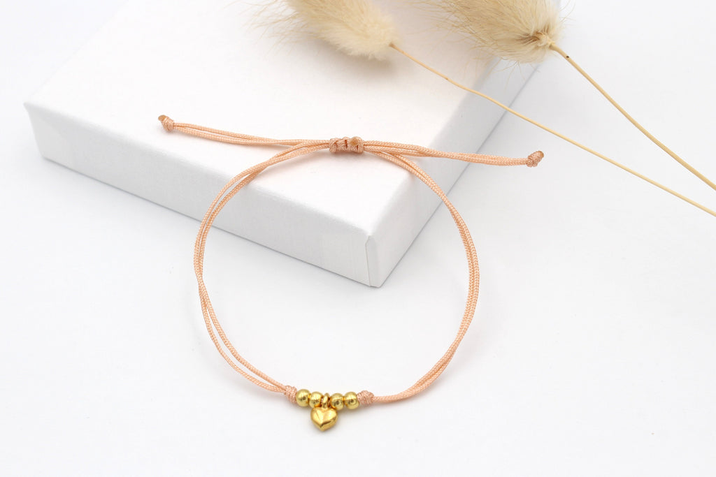 / Makramee Armband mit Herz Anhänger und Perlen