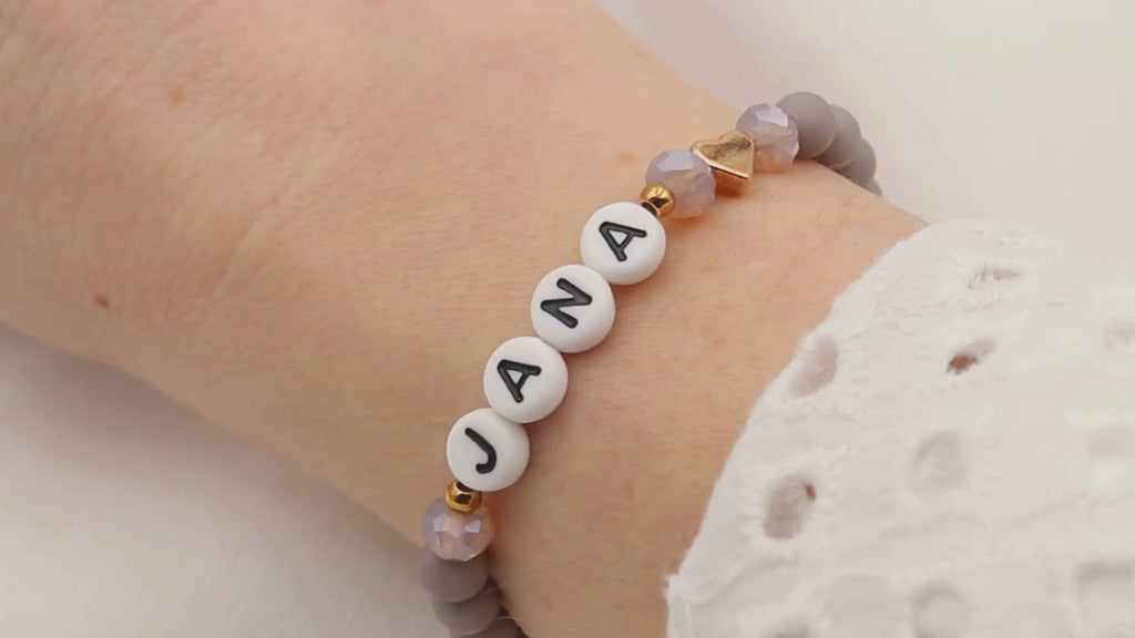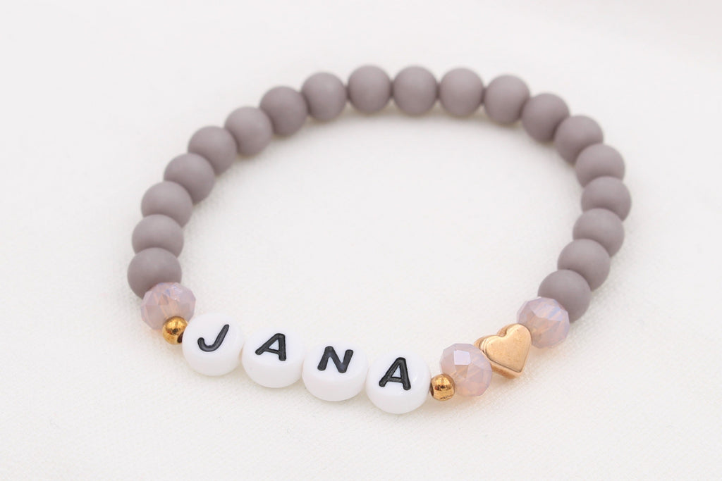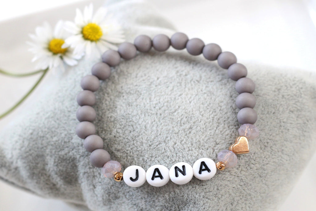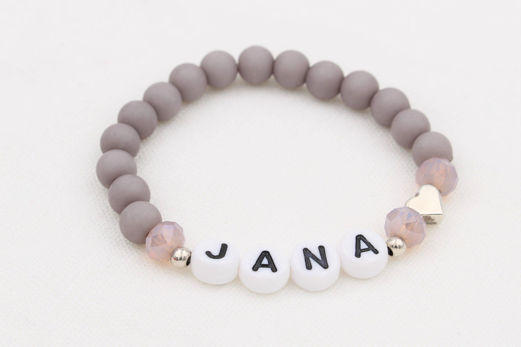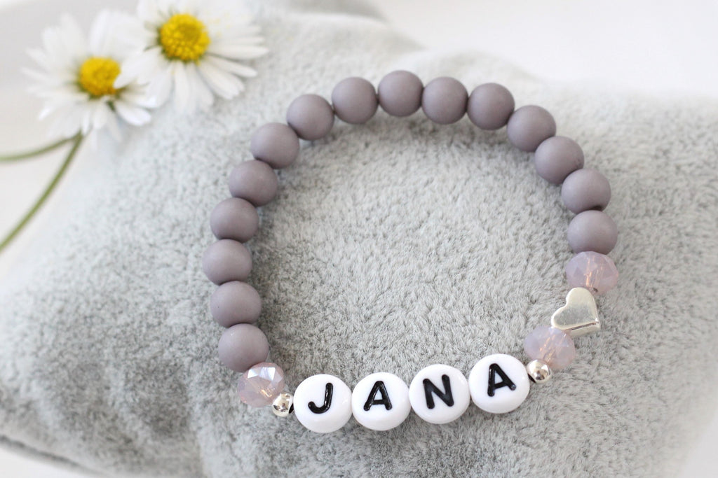 / Namensarmband Kinder Grau Rosa mit Herz