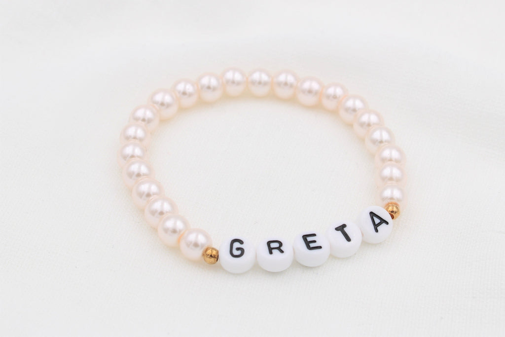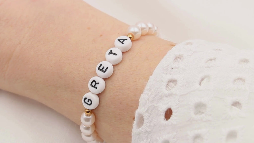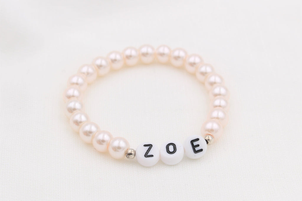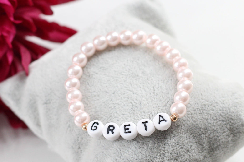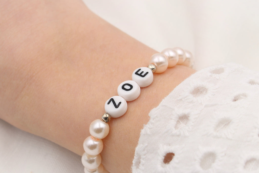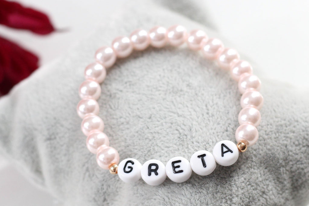 / Namensarmband aus Perlen in Rosa perlmutt
