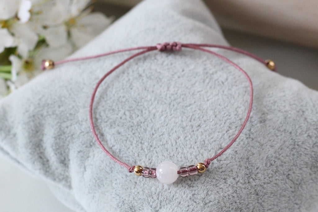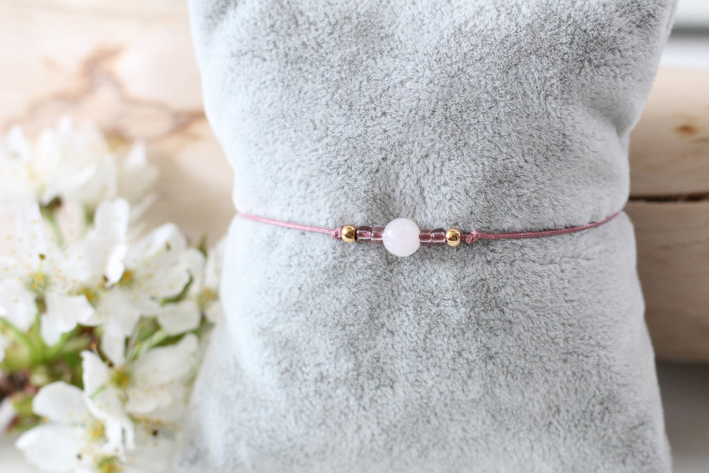 / Makramee Armband mit Jade Perle in hell Rosa