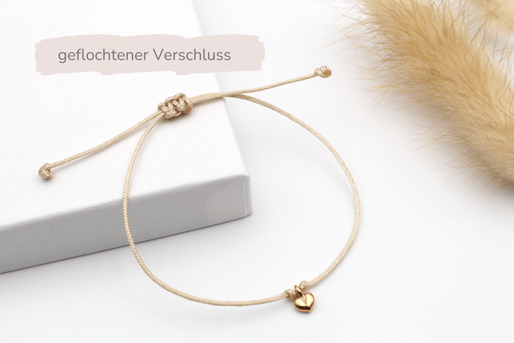 Ein filigranes Makramee Armband mit einem bezaubernden Herzanhänger in silber-, gold- oder rosegoldfarben. Perfekt als Freundschaftsarmband und Geschenkidee für deine Freudinnen. Oder bist du noch auf der Suche nach einem passenden Accessoire für den Junggesellinnenabschied oder die Brauparty? Dann ist dieses Herzarmband genau das richtige für dich. Durch unsere große Farbauswahl, kannst du das Armband mit Herz Anhänger individuell auf deine Motto oder Farbe des Outfits anpassen lassen.