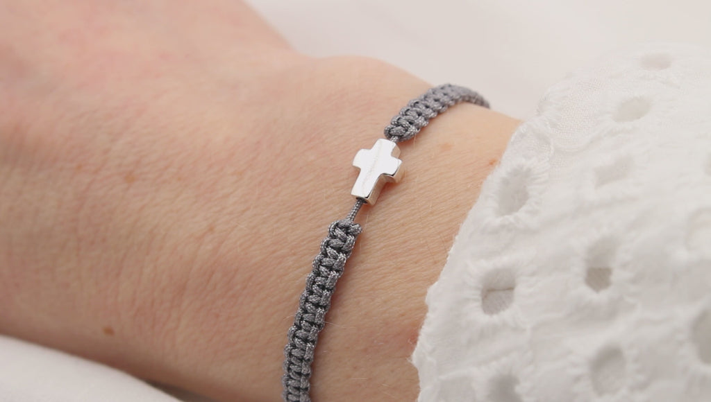 / Armband mit Kreuz Herren 925 Silber, Makramee