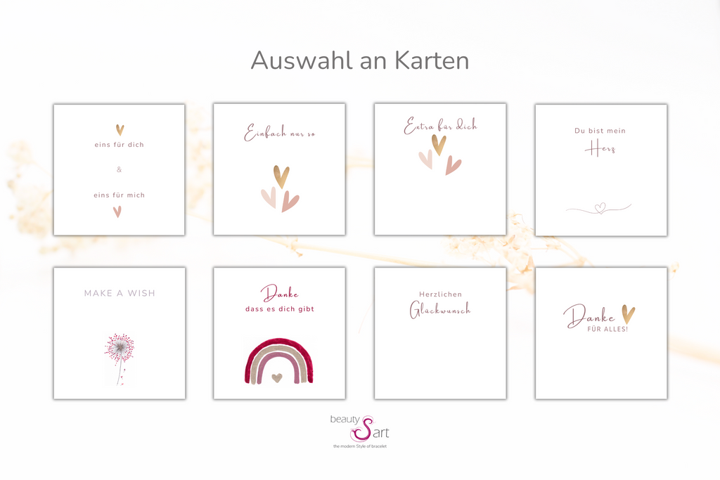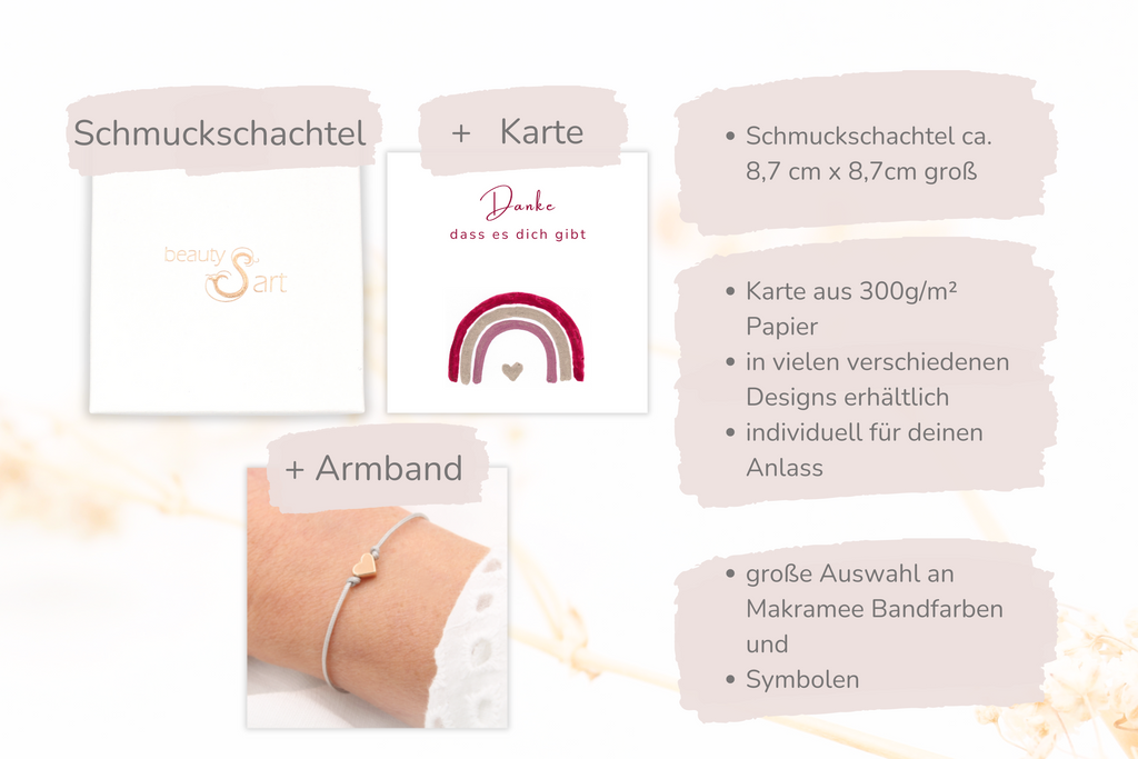 • Lieferumfang: 1 Armband (nach Auswahl) in Beautysart Design Schmuckschachtel + Karte deiner Wahl