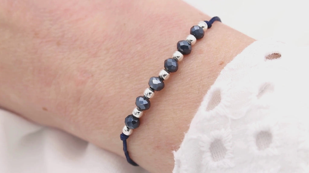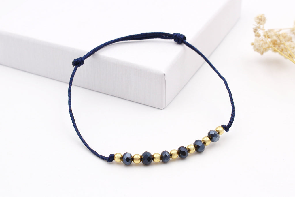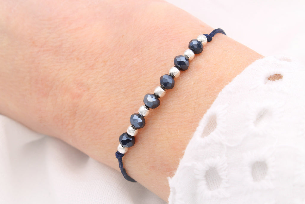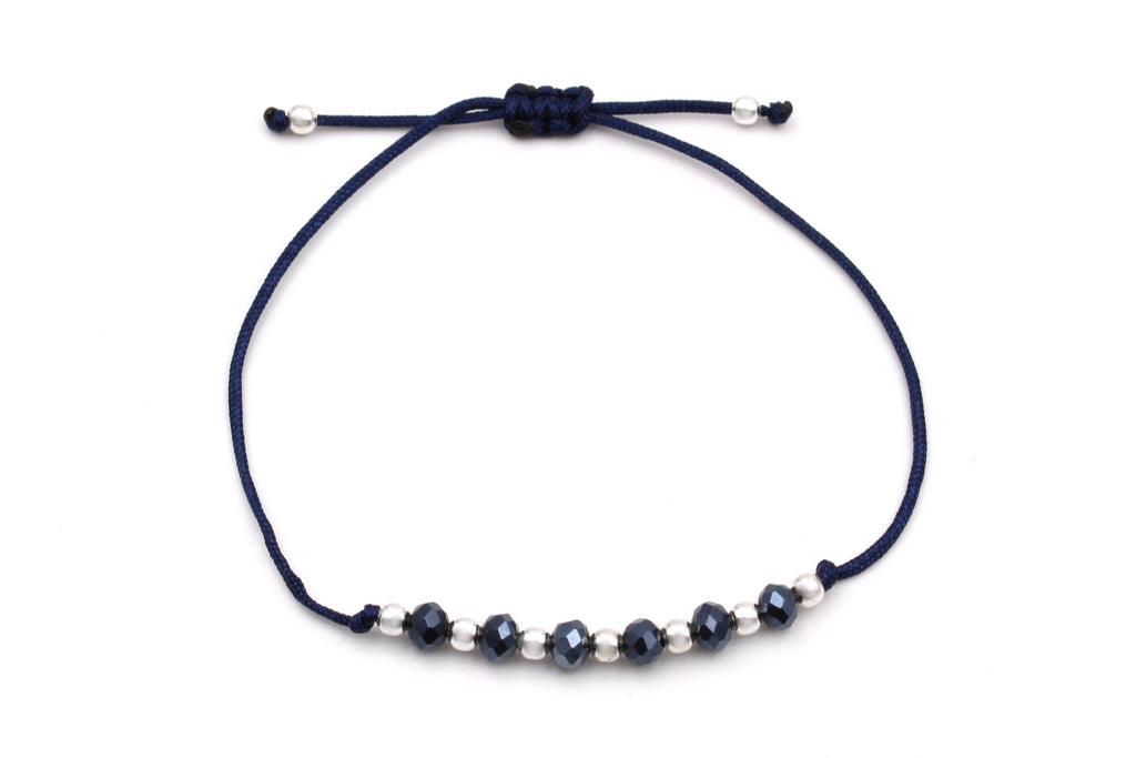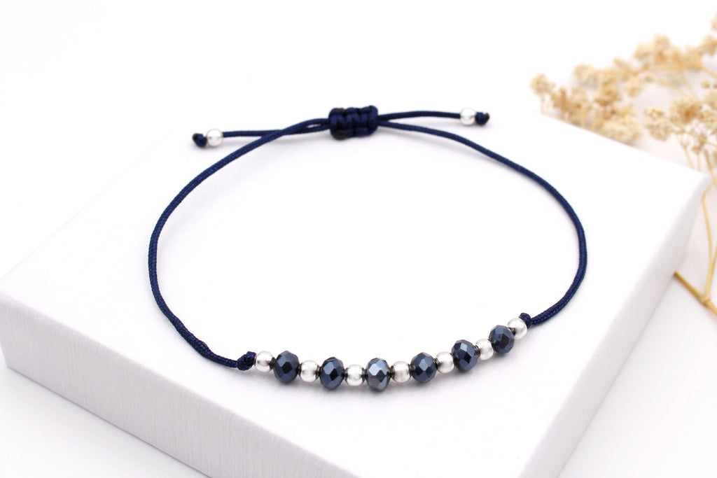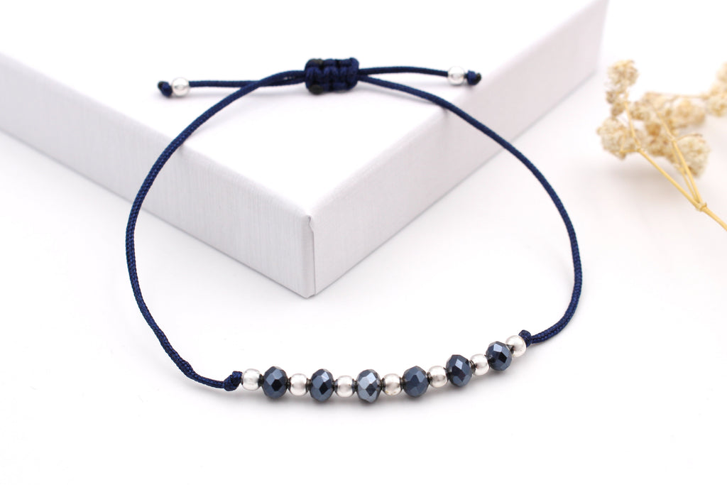 Dieses blaue Freundschaftsarmband strahlt durch seine besondere Materialkombination. Blaues Makramee, funkelnde, facettierte blaue Glasperlen und kleine 925 Silber Perlen setzten ein edles Highlight an deinem Handgelenk. Dank des verstellbaren Verschlusses passt sich das blaue Freundschaftsarmband mit Perlen individuell an deine Größe an. Ein perfektes blaues Accessoire für Damen und glänzende Geschenkidee für die Freundin oder Mama zu Muttertag.