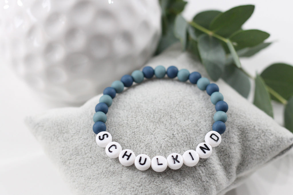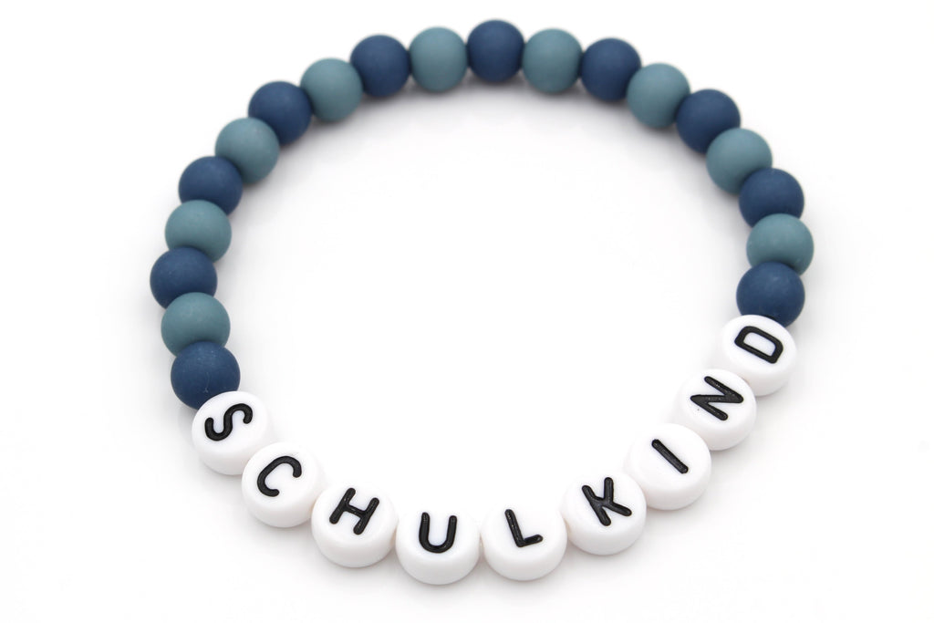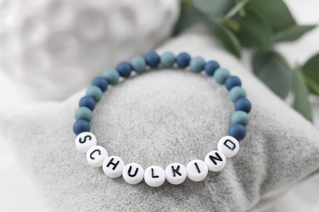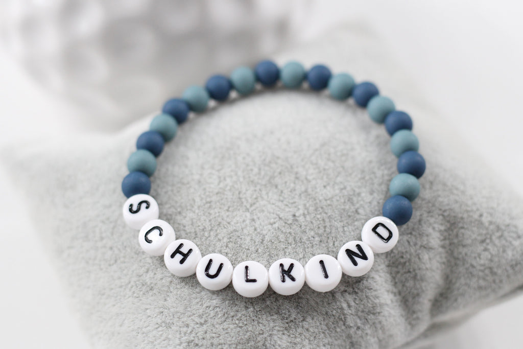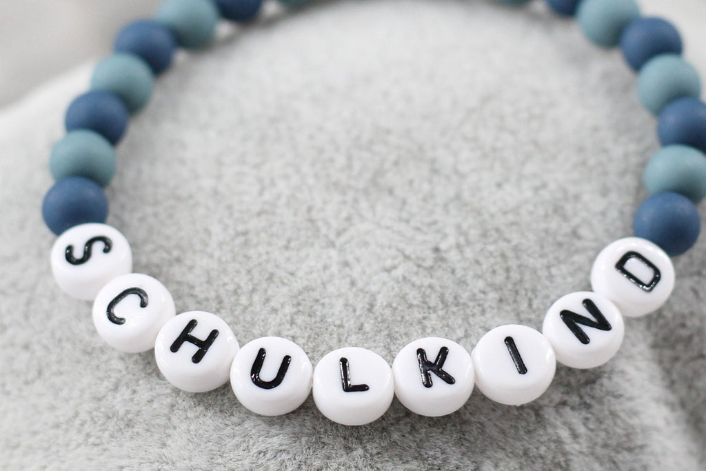 Ein personalisiertes Armband für das Schulkind. Das Namensarmband aus unterschiedlichen türkisfarbigen Acryl Perlen ist ein echtes Highlight für Mädchen und Jungen. Du kannst das Armband Schulkind individuell auf deinen Wunschnamen anfertigen lassen. So wird es jedes Armband mit Namen zu einem ganz persönlichen Accessoire. Es eignet sich wunderbar als kleine Geschenkidee für den Schulanfang oder als kleine Aufmerksamkeit für die Schultüte und ist unter den Schulkindern ein beliebtes Accessoire.