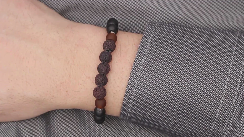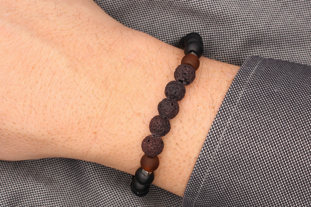 Dieses Perlenarmband für Herren kombiniert matte Schwarz- und Brauntöne zu einem stilvollen Statement für Männer, die Wert auf Ausdruck und Qualität legen. Die einzigartige Materialkombination aus Holz- und Lavaperlen sorgt für eine besonders leichte und angenehme Tragfähigkeit. Eine kleine viereckige Perle lockert das Perlenarmband für Herren optisch auf und verleiht ihm so einen luxuriösen Alltags Look. Eine tolles Herrenarmband und Accessoire als weihnachtliche Geschenkidee für den modernen Mann.