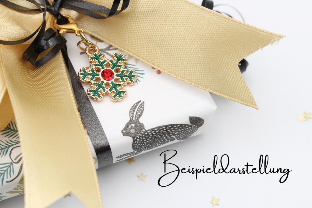 • Größe & Farben Anhänger Schneeflocke: grün-rot-goldfarben ca. 21 x 17mm